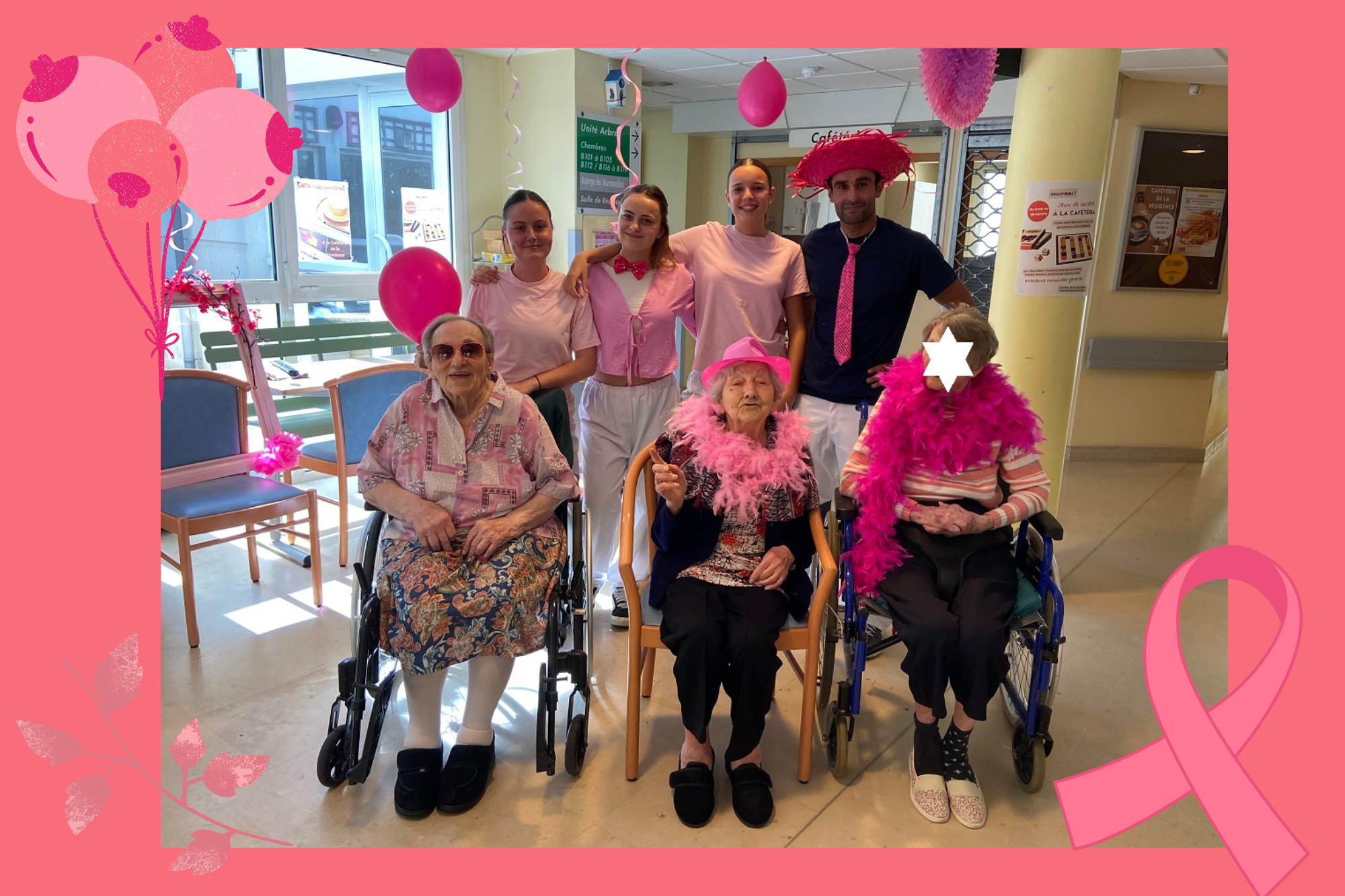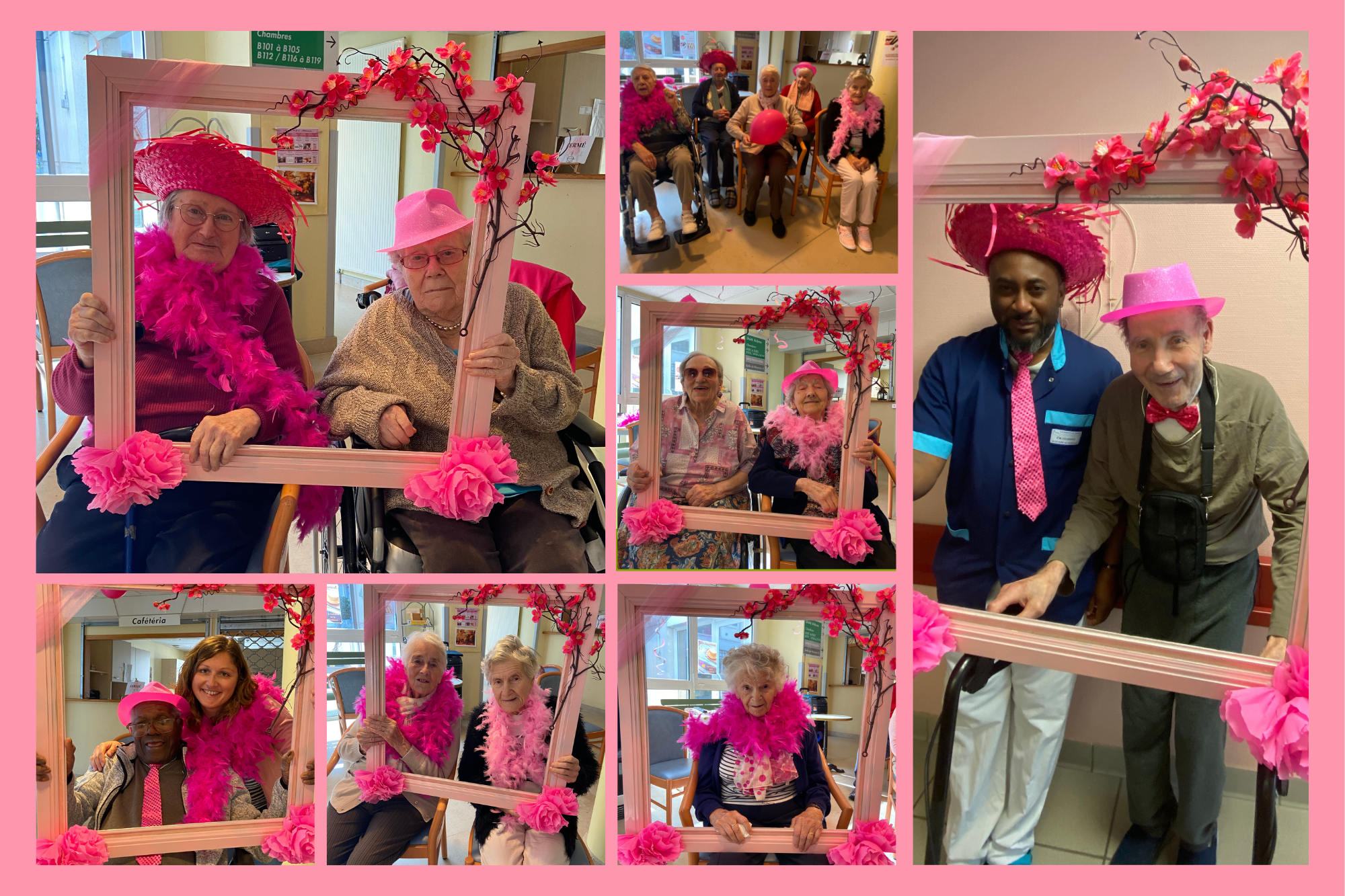 A l’occasion d’Octobre Rose, mois de lutte contre le cancer du sein, l’équipe d’animation a souhaité montré l’engagement de l’EHPAD en donnant rdv aux soignants et résidents à la Cafétéria de la Résidence vêtus de rose (vêtements ou accessoires).