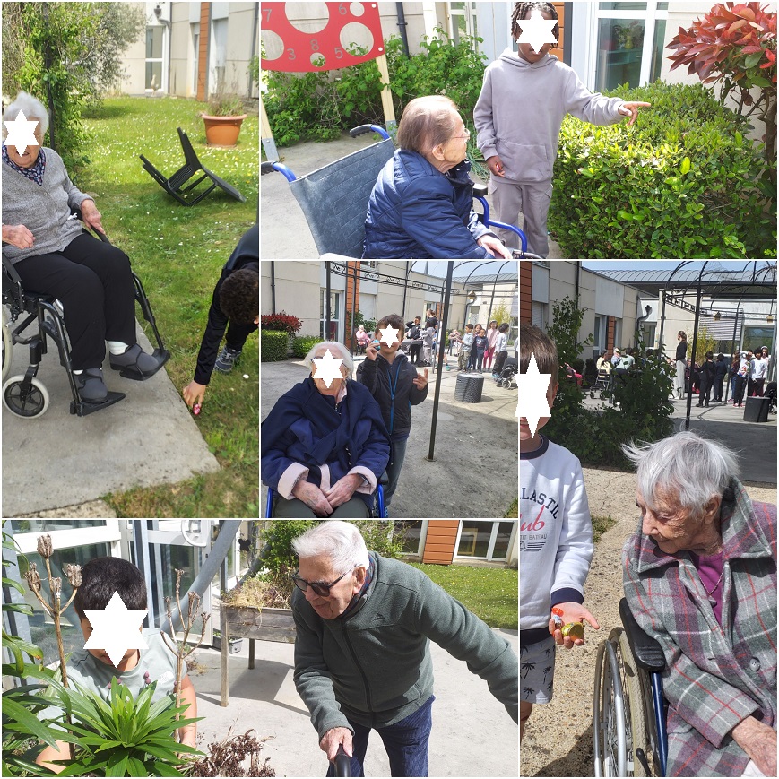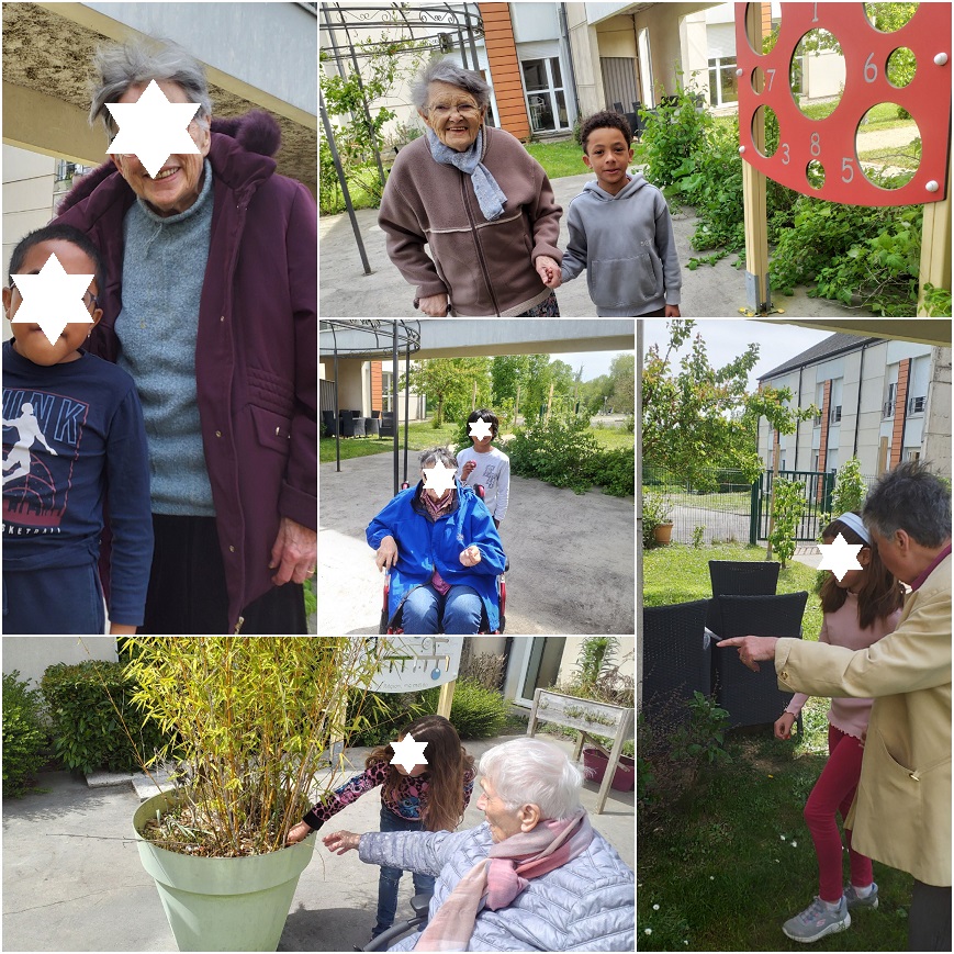 Afin de favoriser les échanges intergénérationnels, des binômes avaient été constitués par l'équipe encadrante, associant un ou plusieurs enfants à un résident.