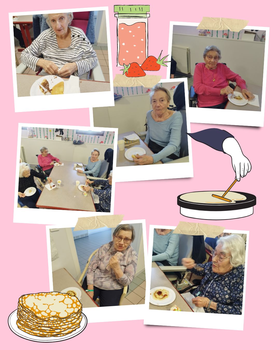 Dès les premières minutes, une douce ambiance musicale est venue accompagner la dégustation de délicieuses crêpes, préparées pour le plus grand plaisir de tous. Sucre, confiture ou nature… chacun a pu se faire plaisir selon ses envies, dans une atmosphère conviviale et détendue. Les discussions se sont animées, les souvenirs ont refait surface, et les éclats de rire ont rapidement rempli la salle.