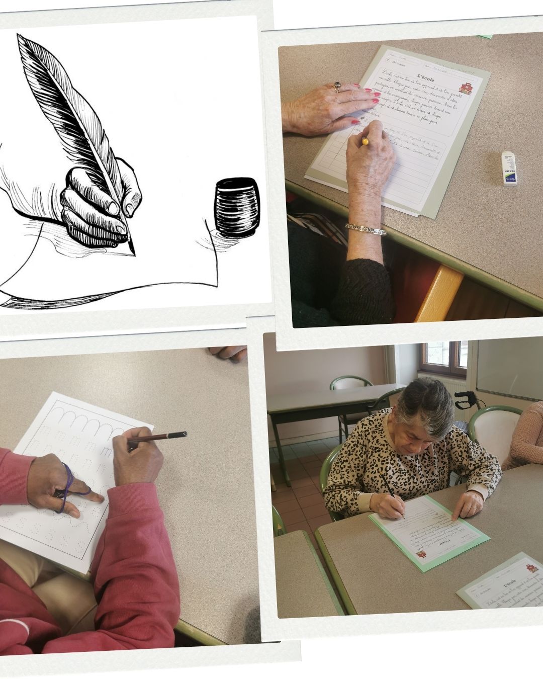 Bien plus qu’un simple exercice d’écriture, la calligraphie permet de travailler la motricité fine, la mémoire et la coordination, tout en offrant un moment de détente et d’expression personnelle. Chaque séance devient un temps de partage, où les résidents redécouvrent le plaisir du geste, des lettres et de la création artistique.