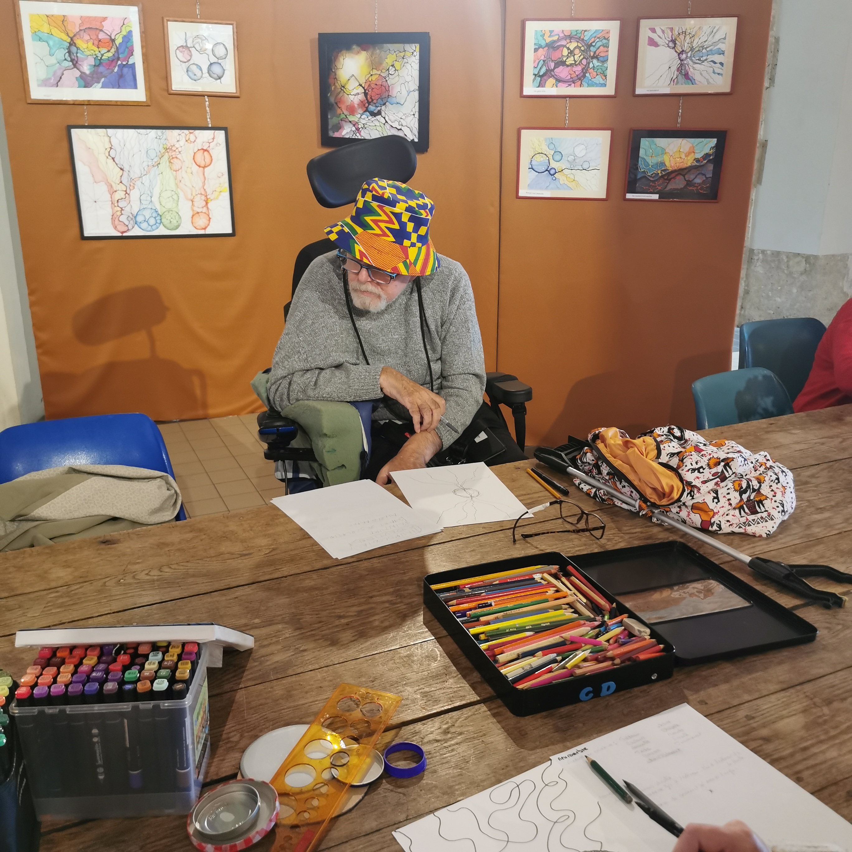 À la suite de son exposition, Clara a proposé aux résidents un atelier d’initiation pour découvrir cette technique originale. Certains sont venus par curiosité, d’autres avec l’envie de s’essayer à un nouveau mode d’expression.