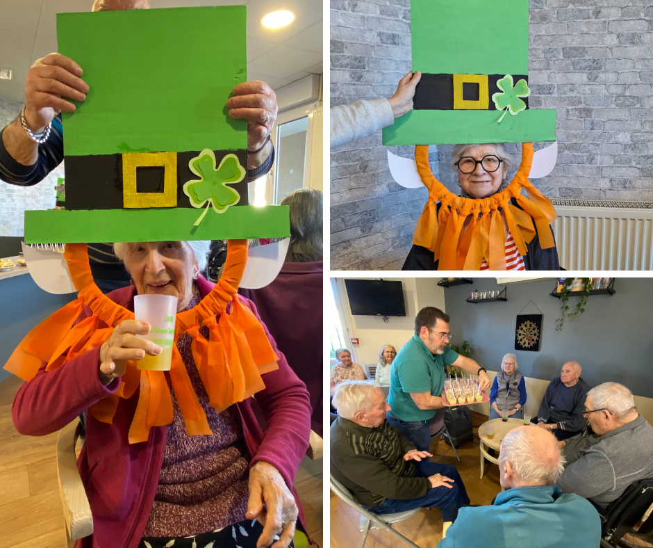 L’occasion de sympathiser dans un espace rempli de convivialité où les discussions et les rires se sont faits entendre. Le tout évidemment animé au son des musiques irlandaises. Nous n’avons pas manqué l’occasion d’immortaliser ces instants en prenant des photos souvenirs avec le cadre spécial « St-Patrick » confectionné en amont par les résidents et le service civique de l’EHPAD.