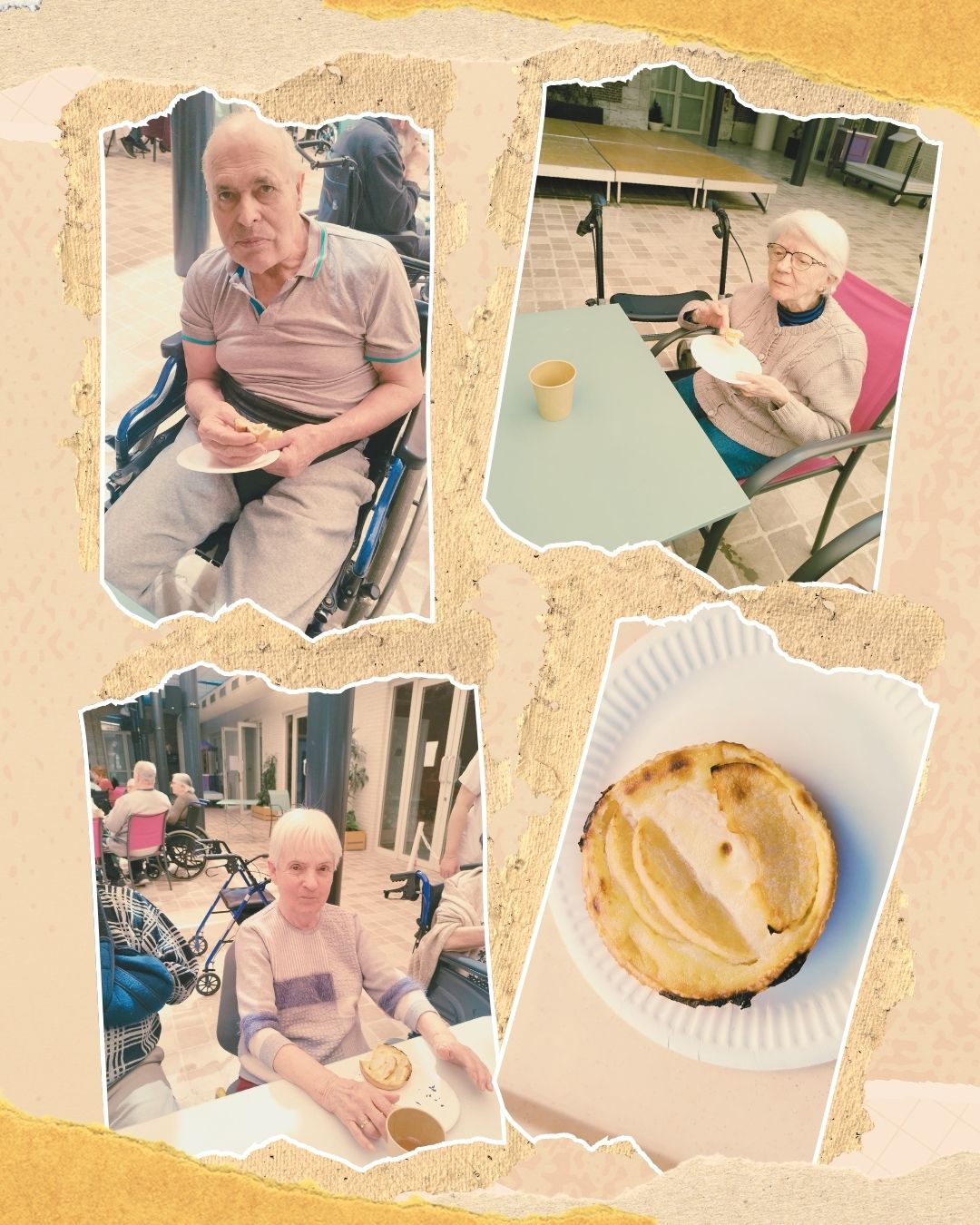 Après cette parenthèse rythmée, place à la dégustation. Les résidents ont pu savourer de délicieuses tartelettes normandes, accompagnées de jus de fruits variés et rafraîchissants. Un moment simple mais très apprécié, où le plaisir gustatif s’est mêlé à la chaleur des échanges entre résidents et équipes.